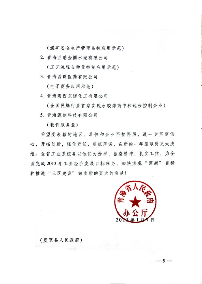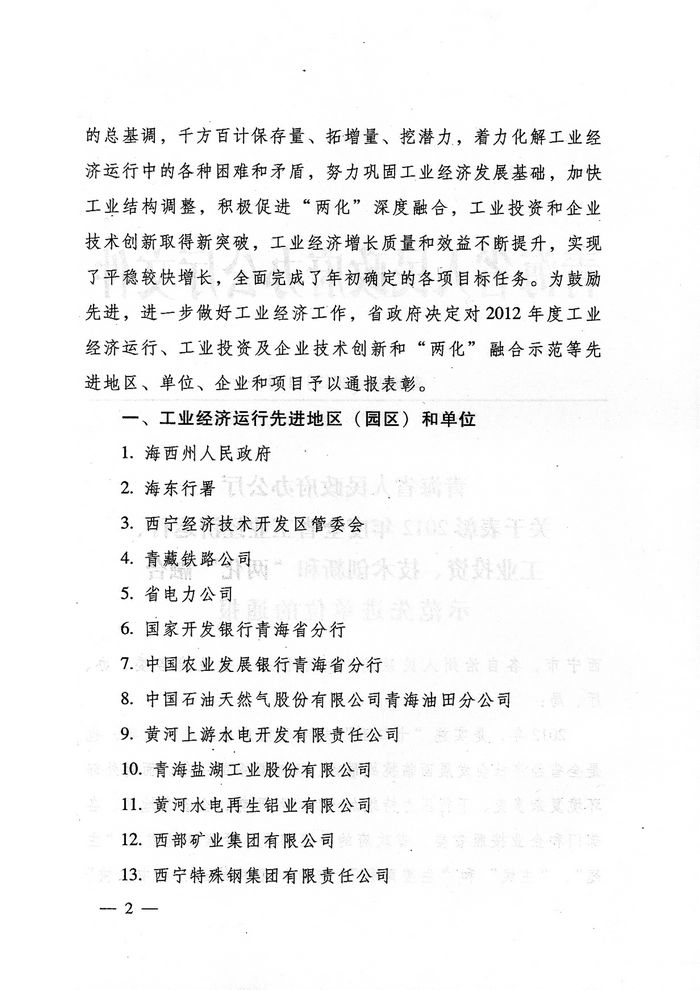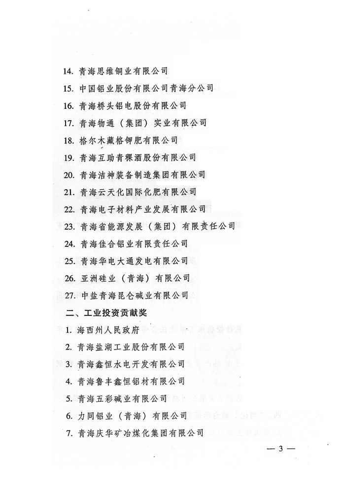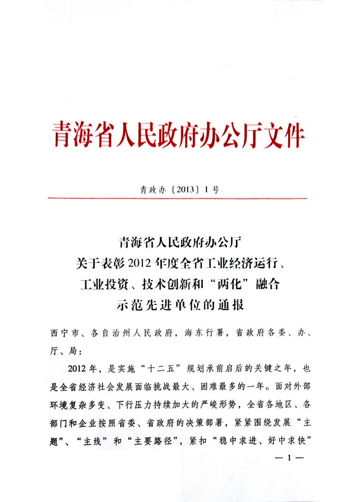 集團榮獲2012年度青海省人民政府“工業投資貢獻獎”
