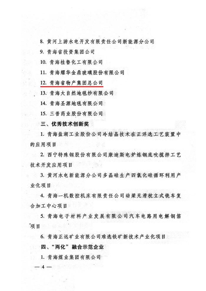 2012年,青海省物產集團總公司在省委、省政府及省國資委的大力支持和領導下,集團總公司按照全省工業經濟總體部署和要求,著力推進工業項目建設,榮獲"2012年度工業投資貢獻獎"。