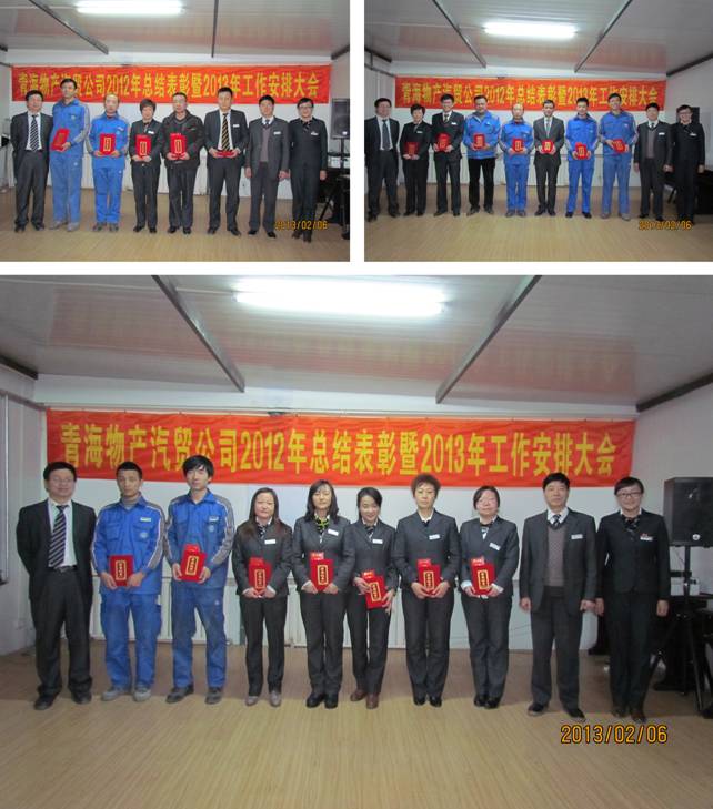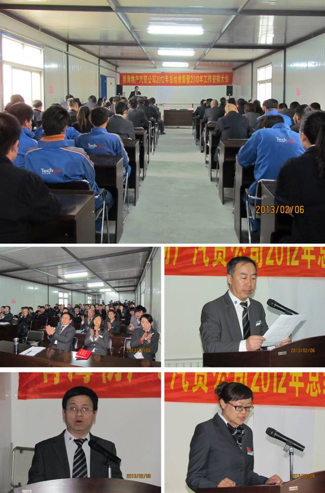 2月6日下午17點,青海物產汽貿召開了以"腳踏實地創佳績奮發圖強展新顏"為主題的2012年度工作總結暨2013年工作安排會議,150余名職工參加了大會,會議由副總經理高金春主持。