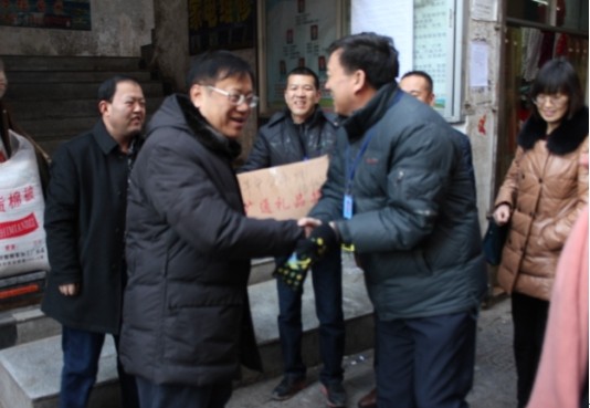 集團(tuán)領(lǐng)導(dǎo)一行先后來(lái)到省三建公司汽配市場(chǎng)、三明市場(chǎng)、付家寨、平安分市場(chǎng)、臨空公司施工現(xiàn)場(chǎng)、朝陽(yáng)物流和機(jī)電市場(chǎng)、配送公司倉(cāng)庫(kù)、現(xiàn)代物流家美家具建材城、長(zhǎng)春炭素、康寧公司、工業(yè)投資公司生產(chǎn)車(chē)間和項(xiàng)目現(xiàn)場(chǎng)、物產(chǎn)民爆公司倉(cāng)庫(kù)以及物產(chǎn)汽貿(mào)公司上海大眾4S店等生產(chǎn)經(jīng)營(yíng)第一線,深入了解春節(jié)期間生產(chǎn)經(jīng)營(yíng)情況、安全生產(chǎn)情況,親切慰問(wèn)堅(jiān)守在一線的廣大員工,將慰問(wèn)品分發(fā)到值守人員手中,帶去集團(tuán)領(lǐng)導(dǎo)暖暖的問(wèn)候和衷心的祝福。每到一處,集團(tuán)領(lǐng)導(dǎo)同一線員工一一握手,詳細(xì)詢問(wèn)節(jié)日期間值班和職工生活安排情況,同時(shí)對(duì)堅(jiān)守崗位的職工給予充分的肯定和高度的贊揚(yáng),為他們?cè)诠?jié)日期間舍小家為大家的奉獻(xiàn)精神表示衷心的感謝。王玉輝總經(jīng)理情深意長(zhǎng)地說(shuō):正是因?yàn)橛辛艘痪€員工的勤奮和努力,才確保了集團(tuán)系統(tǒng)生產(chǎn)經(jīng)營(yíng)的平穩(wěn)運(yùn)行,感謝大家!同時(shí)要求所屬公司領(lǐng)導(dǎo)春節(jié)期間一定要安排好職工的生產(chǎn)生活,并做好各項(xiàng)安全防范工作。